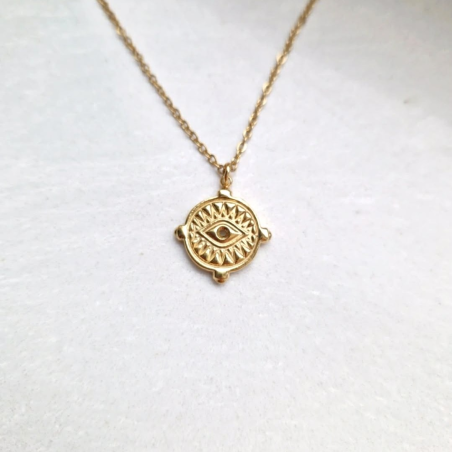 Naszyjnik na łańcuszku ze stali szlachetnej z motywem oka proroka.