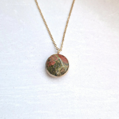 Naszyjnik na łańcuszku ze stali szlachetnej z unakitem.